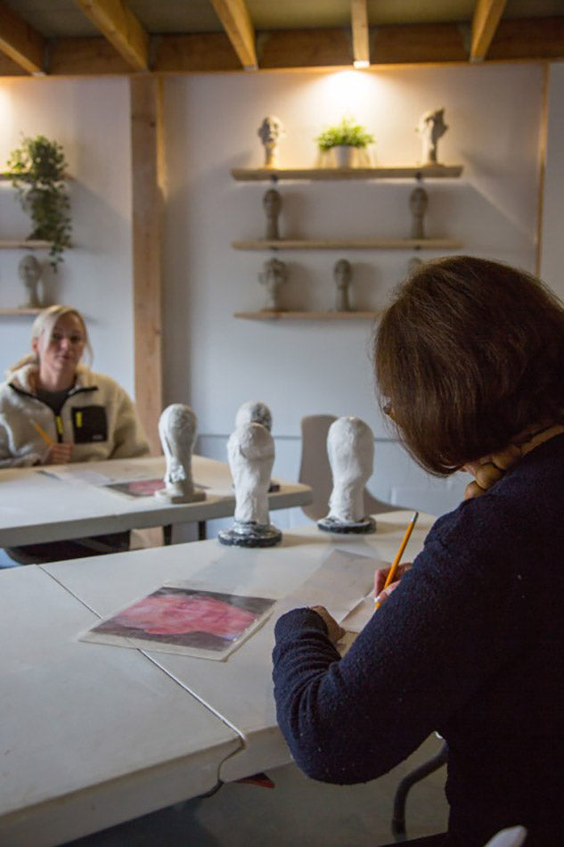 The process of creating a Skullpta Face is that its semi-guided to take away the pressure of creating a perfect anatomically correct piece of work. Within the studio setting or at home we provide instruction on how to apply the basic components of the face, eyes ears nose etc. This is just the base layer for the rest of your own unique creative expression. Your only barrier is yourself.